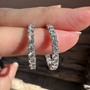 They are in 14k white gold with rhodium plating. They have very secure clasps that snap closed. They also are the inside out style which is awesome because you just see diamond!