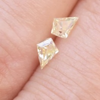 For sale is 100% untreated pair of kite shaped diamonds i purchased from yvonne raley. The cut is amazing and the light yellow color adds a soft sparkle. The pair totals .44ct. They’d make perfect side stoned or small studs.
