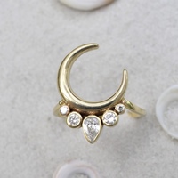 I am selling a never-worn ring purchased from angel alchemy jewelry. This crescent moon dreamcatcher ring is done in solid 14k yellow gold. The diamonds are clear and sparkly. It’s a size 7.25, but can be resized by any local jeweler. It was $1450 when i purchased it 2 years ago.