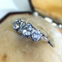 Lovely Old Mine Cut diamond band 1ctw. Set in platinum prongs with 18K yellow gold shank. Center diamond is 0.45 carats, and outer diamonds are 0.30 each. Color is G-H, and clarity is SI1. Original antique ring circa 1900. Diamonds are natural and earth mined. Ring size is 5.5. Shipping is $20 US.