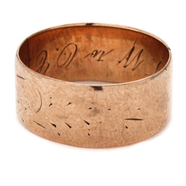 Hey Everyone! Up for sale is a 10k Rose Gold band i bought with the hopes of wearing myself but its a bit too small. I thought it would be a great candidate for re-engraving. It was clearly well loved and has a nice patina. Details below.