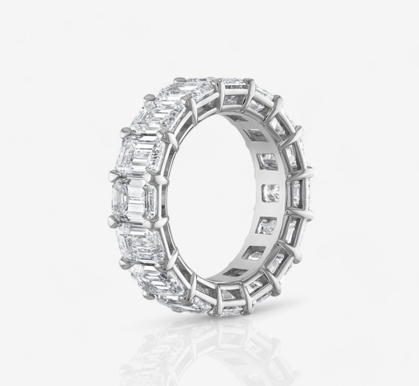 11.20 cttw Emerald Cut Eternity Band - all diamonds are lab grown and hand selected to match perfectly! Bold and sparkly, this emerald cut diamond eternity ring is bound to catch the eye. Sparkling diamonds are set delicately in a common prong gallery to maximize the brilliance of these diamonds. Size: 6.75 Color: G-H Clarity: VS1/VS2 16 diamonds totaling 11.20 carat, each diamond a whopping 70 points! Please reach out for additional photos and all the paperwork! Original packaging and all papers present.