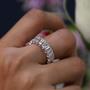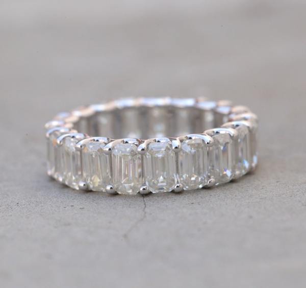 For sale I have this gorgeous custom made eternity ring. The stones are colourless Moissanite 4mm x 2mm each. I had it made by a local jeweler and it is incredible. Stones are all gorgeous and crisp and white - I get compliments every time I wear it.