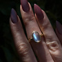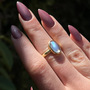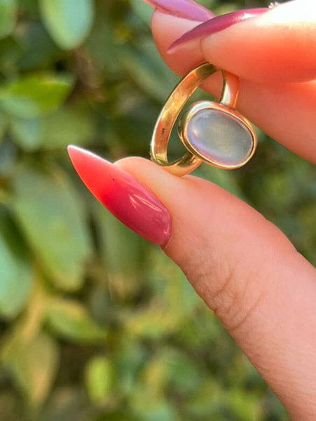Purchased in London, this ring features a beautiful moonstone with whimsical flashes! Its hallmark 585 is continental European from the very beginning of the 20th century. It’s crafted in a hefty 14 kt gold. In today’s market, the amount of gold alone is worth a lot. Add the vintage moonstone and you have a highly desirable ring! Size 8 and sizable by your local reputable jeweler.