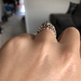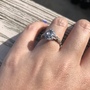 Unheated gray sapphire ring and diamond halo 14k white gold, size 5.5 Appraisal certificate included. Stone is .75 with natural diamonds in halo and on shank.