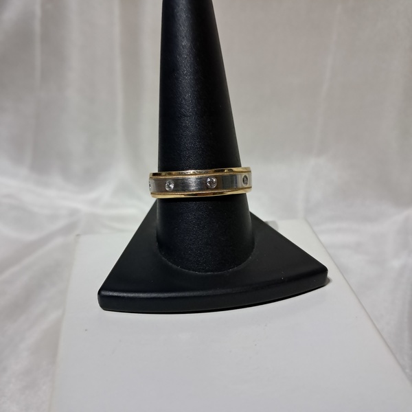 14k White and Yellow Gold & Diamond Artcarved Band Brushed, polished, and millgrain detailing. 0.25ctw Size 10 New, never worn Text 405.938.5615