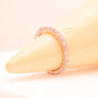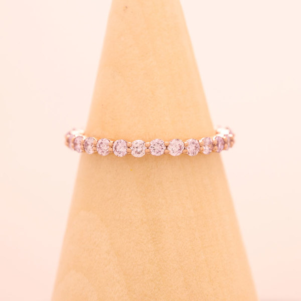 For sale is a stunning pink diamond band with 0.98ctw of natural pink diamonds that were sourced by Diamonds by Lauren. They are gorgeously set in a 14K rose gold shared prong setting by David Klass Jewelry. The band is approximately 2mm wide and 1.8mm high. The ring size is a 6. Payment is by PayPal friends/family or bank wire. As I am a private seller, all sales are final, so please ask all questions before buying. Buyer pays shipping within the US.