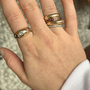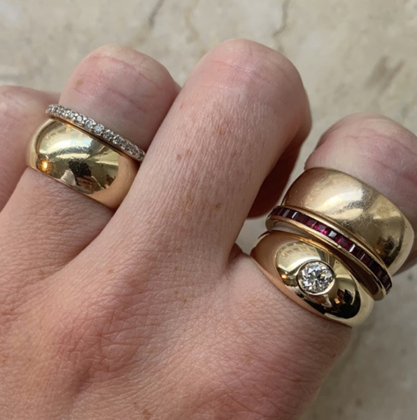 Lovely, comfortable channel-set band with beautiful rubies. Set in 14k gold. Other rings are for reference only.