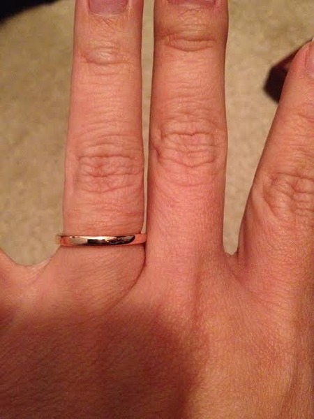 For sale is a barely used 2mm Rose 14k Gold band from Blue Nile. I purchased it Jan 10, 2014 but didn't receive it for a couple of weeks. I've worn it a handful of times and it's in excellent condition, no scratches that I can see with the naked eye.