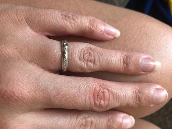 Home » Bands » Reduced VIntage Engraved 14kt White Gold Band Size 5