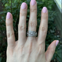 Home » Bands » Size 6 14k wide Floral Band with diamonds