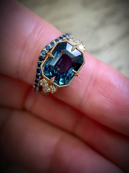 SOLD: Teal Sapphire “Jessica” Curved Band in 14k YG