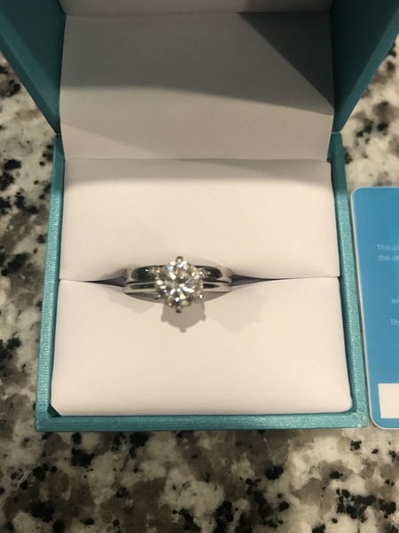 1.5 ct Hennie Round Moissanite 6 Claw Prong High Shoulder Solitaire Ring. inclues 14k white gold band. Size 7. Bought from Fire & Brilliance 01/19