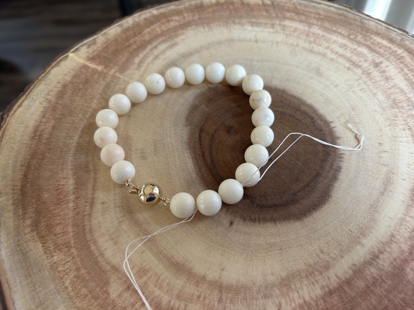 Home » Bracelets » 10-11mm vintage angelskin coral, 14k clasp