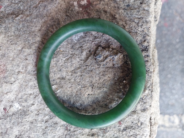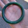 This is a lovely natural nephite jade bangle I bought from Jade Mine. It is unique in which it has a satin finish on it instead of shiny polish. It is 62mm and is about 10mm wide.