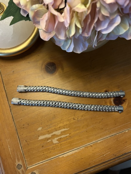 Perfectly bold, stylish and comfortable, this 10.5mm hand woven bracelet is so easy to wear casually or as a dress up accessory. The diamonds sparkle and everyone will notice your well appointed wrist. Bracelet is solid, substantial and smooth to the touch. I have two available. One end to end is just over 8 1/4”. The other one is just under 8 1/4” (8 3/16”). Not worn a great deal, in excellent condition. Bracelets sold separately($1800 each) REDUCED to $800 each) All sales final. Will ship insured and signature required. ( I’ve been on Pricescope for years and have sold several substantial items)