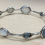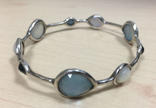 Sterling silver Ippolita Wonderland Open Teardrop bangle bracelet featuring faceted pear shape blue quartz and mother of pearl doublets and hammered finish throughout.