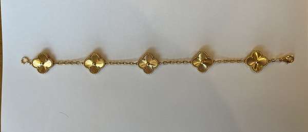 This has brand stamps but it is NOT authentic VCA, it is a replica. 18k gold plated over 925 sterling silver. Weighs 14.9g, Approx 7.5" Only worn once around the house for a couple of hours. I have not seen auth VCA 18k in person to compare to, but when I compare the gold color to an 18k pendant I recently bought in Greece, they are very much the same degree of yellow. USPS First Class shipping included. Payment to be made via Venmo or PayPal FF.