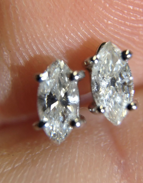 0.30 ctw Marquise diamond stud earrings. H in color and SI1 clarity. Set in marked 14K white gold. Shipping is $15.