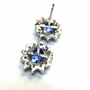 Featuring 1.2 ctw of natural oval Ceylon Sapphires, periwinkle blue in color and excellent clarity. Surrounded by 0.24 ctw of Brilliant Cut natural diamonds, G in color and SI2 clarity. Earring measurements are 11mm x 9mm, 2.3 g. Set in marked 14K white gold. Shipping is $20 US.
