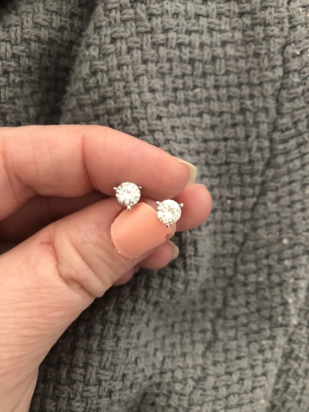 I’m selling a pair of 3 prong martini style moissanite earrings, 1ctw (.50ct each earring) 14k white gold earrings. These were bought 6 years ago on moissanite company site. Only worn a few times. They’re in really good condition and are a beautiful set of earrings. I don’t wear them anymore, so I’m selling them. Please feel free to ask any questions and any offers are welcome.
