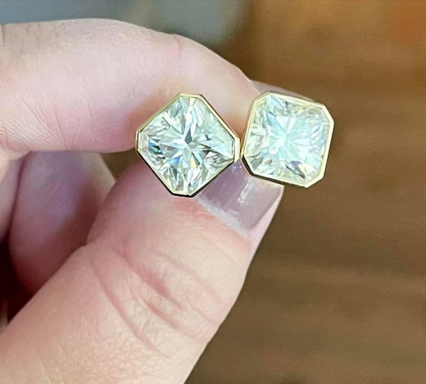 14kt Yellow Gold Square 10mm Radiant Ascher Bezel Earrings Moissanite