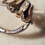 Measurements: Approx. 16 mm north to south; approx. 9 mm across the diamond settings