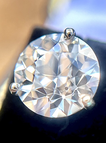 6800 via no fee payment method Zelle,Wire,or Check. These IGI certified Laboratory Grown Diamonds were custom cut in the antique style of Old European Cut Diamonds with small tables and open culets. They feature the coveted Kozibe pattern where the open culet is reflected within the many facets of the diamond. We have set these stunning diamonds in modern 14k white gold Martini 3 prong settings with upgraded oversized Jumbo friction backs.