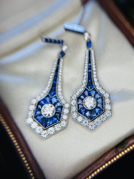 Home » Earrings » 9.14 ctw Platinum Antique Diamond and Sapphire Drop Dangle Chandelier Earrings