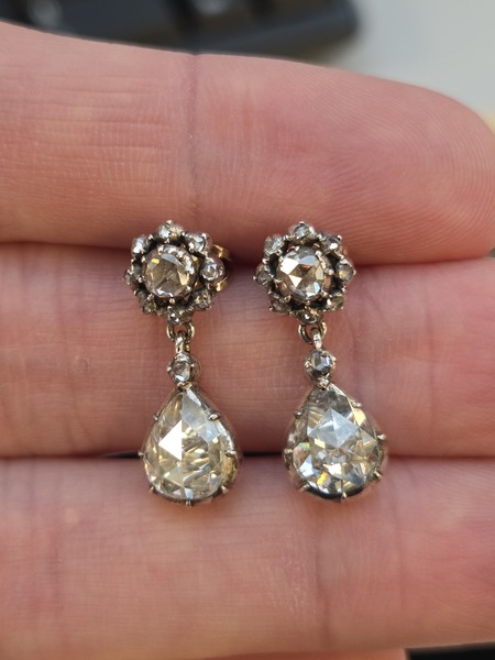 Video: https://imgur.com/a/antique-rose-cut-diamond-earrings-GpsN9NF