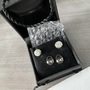 These gorgeous 14kt White Gold, Forever Brilliant Charles & Colvard bezel Moissanite earrings were originally over $1200. I purchased them from the original owner for $770. They mostly sit in their box. Please note that I replaced the tiny backs with these jumbo sterling backs. They work great! Experiment with turning them with the “smile” cut out on top or on the bottom. (Called happy backs as they are usually worn with that cut out on the bottom as a “smile” shape…I wear them with that at the top because it works better for me.) The stones are 8mm each but with the setting they are more like 10mm on the ear. Fantastic earrings. The earring post is marked for Moissanite too – which I do not see these days. These were purchased before the patent ran out.