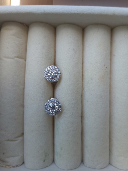 Each earring has at least an additional 32 round brilliant cut pave diamonds weighing approximately .23 carats