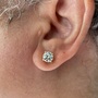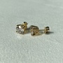 Ritani lab diamonds in 14k yellow gold Stuller basket settings. Diamonds are 6.2mm, approx. 1.25 ctw each. Graded K color, bright and sparkly in appearance, no yellow to my eye. I wanted "bang for the buck" in terms of size, and these definitely deliver.
