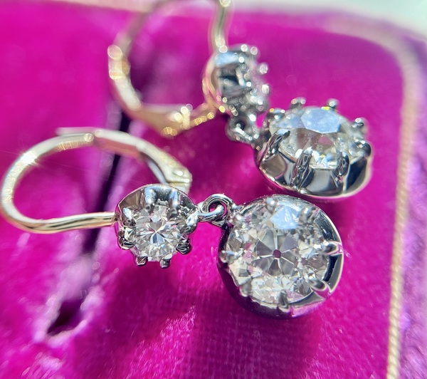 Each larger antique Cut diamond is GIA certified, beautifully matched, and full of life. Bright, sparkling, and unique, this is a pair you won’t want to miss. Layaway Available.