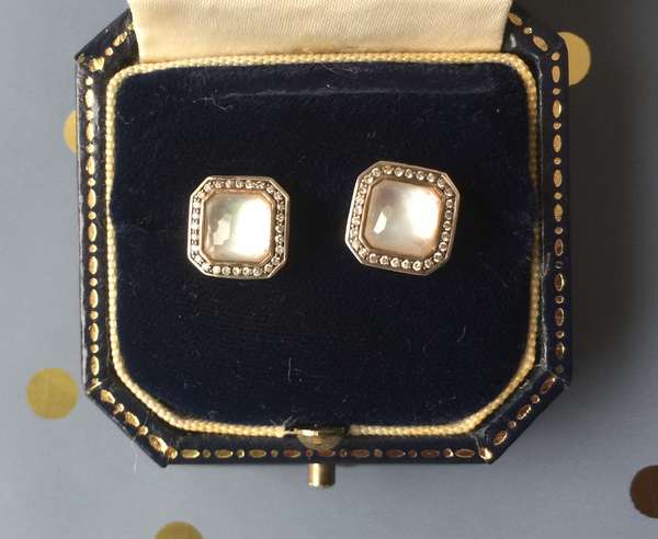 Sterling silver Ippolita Stella earrings featuring mother of pearl backed quartz doublets bezel set at centers, 0.28 carats of diamonds at halos and post backs. Retail price $1195