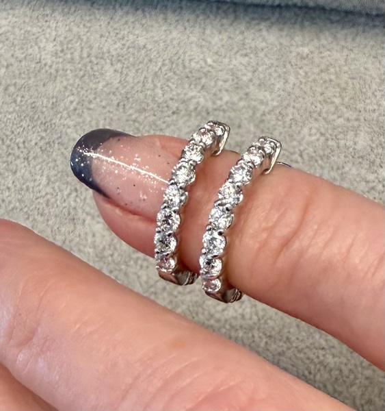 Originally purchased from Anjolee and have original receipt. 1.17tcw 14K white gold inside out hoops.