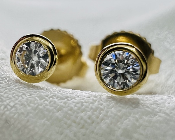 *Sold*18k Tiffany Diamonds by the Yard Elsa Peretti Bezel Stud Earrings 0.16 ctw