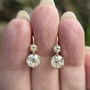 These bright and sparkling, genuine antique, hand cut Old European diamonds are GIA certified and inscribed, recently set into new 18k yellow gold lever back dormeuse drop earrings by our expert jeweler. The diamonds are set in silver as common of the Victorian Era and will form a lovely darkened patina over time just like the original antique earrings they were modeled from, a popular pair that quickly sold from our collection. The word dormeuse translates to "sleeper" in French for earrings so comfortable they could be worn sleeping. These antique diamonds throw big sparkle and are perfect to wear every day or for any special occasion. They are exceedingly comfortable on the ear, so light weight that you may forget they are on but no one else will! Such a rare treasure is sure to be cherished by their new owner. GIA certificates and paperwork will be included so that insurance can be obtained on your new heirloom earrings. They will arrive gift boxed, shipping is fully tracked, insured and signature required for delivery. We offer 0% Layaway Plans up to 7 months with a 20% deposit. We have video posted to our Instagram Vanessaatheritagejewelry A you tube video link can be sent by request.