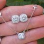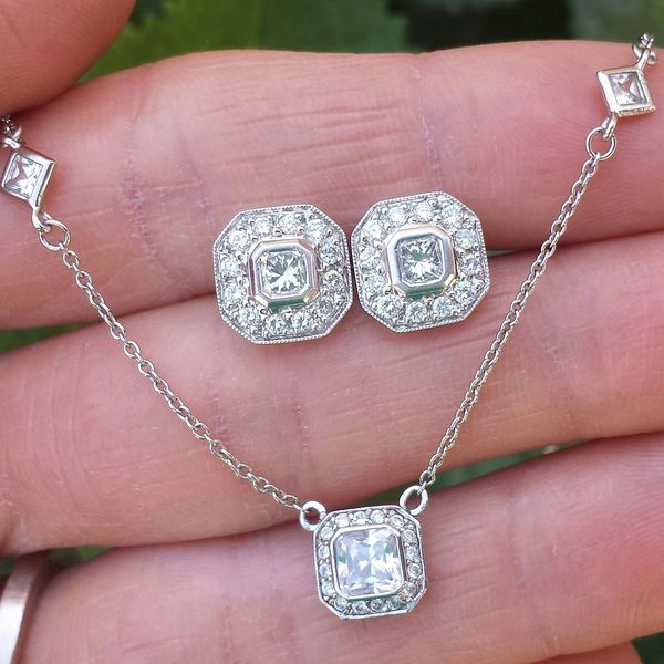 Home » Earrings » Super Blingy 14k VS G - H asscher shaped diamond halo studs plus free necklace