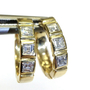 Vintage 1.5 ctw square step cut diamond hoop earrings. Set in stamped 750 18K yellow gold. Three step cut diamonds per earring- each weighing in at approximately 0.25-0.30 carats each. Diamonds are E in color, VVS clarity. Diamonds are natural and earthmined. Earrings 0.6” in length. Shipping is $20 US.