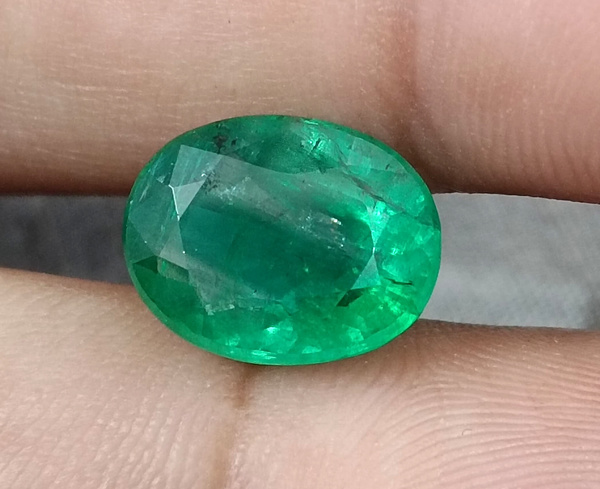 5.72 carats vivid green Swat emerald. Minor oiled loose gemstone.