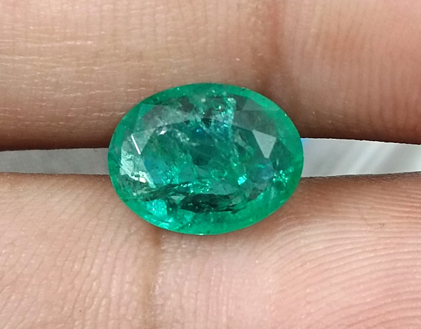 2.40 carats GSI certified medium green Zambian emerald. Oval cu minor oiled loose gemstone.