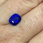 The stone is a dark electric blue in dark lighting situations to a darker cornflower blue in strong lighting situations. It would be classified as a "cornflower" blue stone (it's twin colourwise just came back from Lotus Lab and was designated "cornflower blue"), however, I would not personally describe the stone as cornflower more into peacock blue in low lighting situations but not royal and never too dark in any lighting. This particular stone is pretty close to a trade ideal vivid electric blue up the darker end of what people classify as "cornflower." But to avoid confusion think of it as darker than cornflower and not as dark as royal blue. It is a lovely shade of blue IRL.