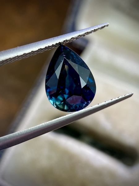 Okay, back to the bling…BIG teal blue unheated sapphire