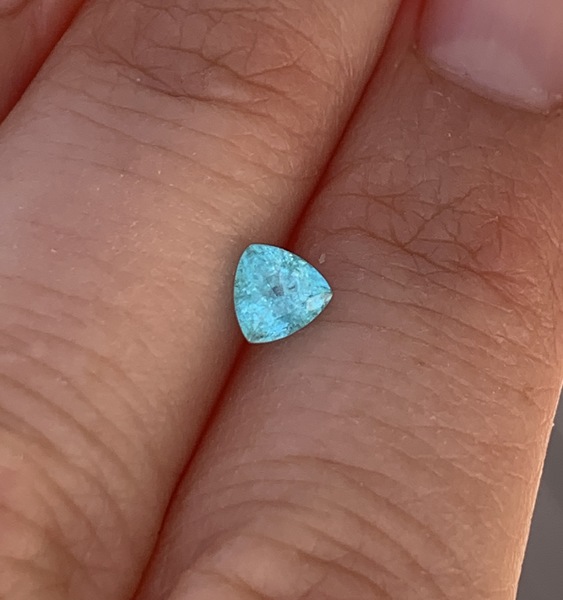 SOLD Beautiful, sparkly and bright trillion Paraiba. This one would be perfect for a stacker ring or pendant accent. Or perhaps part of a multi-stone ring!
