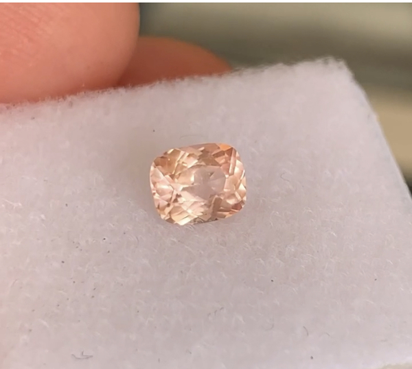 A true Padparadscha, completely natural and untreated. This Ceylon sapphire has a luminous quality and delicate color. Mix of pink and orange that creates a softy glowing peach tone.
