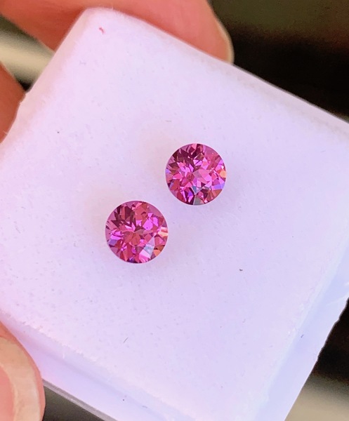 Gorgeous Kenyan Rhodolite Garnet pair - hard to describe color that combines purple, magenta, pink, and fuchsia. Great flowery cutting, sparkling, and clean. No treatments.