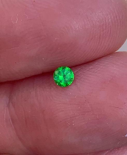 Russian Demantoid garnet, amazing color! This one is off the charts and jumps out across the room. Very well cut which maximizes the neon green color.