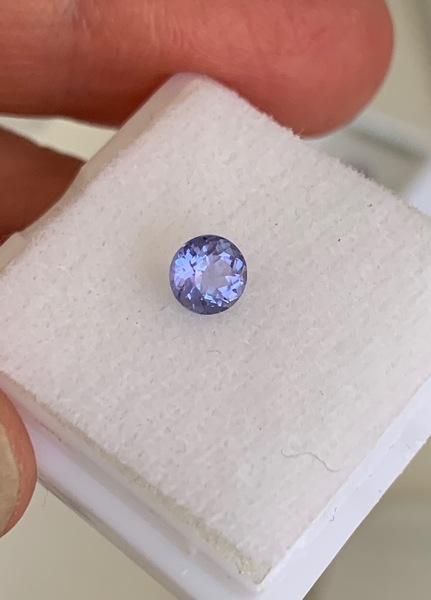 Great cut and very clean stone. Also a good size, at 4.8mm it can work in 5mm settings. Shown with the larger 5.8mm purple sapphire I also have listed for sale, as you can see this one tends more to blue than purple.