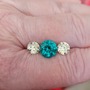 4.38 ct - 9 mm round YAG - Paraiba color - cut by Gary Braun - Finewater Gems. Never set - new condition. Side stones in photo are 7mm light yellow moissanites and will be listed separately. Price reduced to $250.00.
